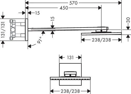 - Douche-arm lengte 450 mm