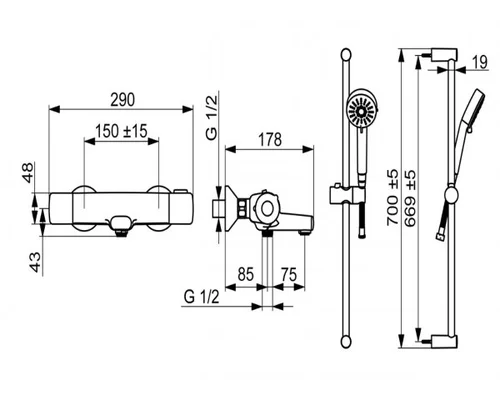 - Levering omvat: Handdouche, douchestang, doucheslang (1500 mm), eco flow.