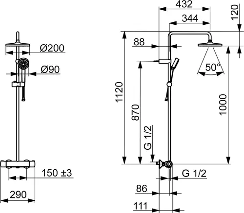 - Douche-onderdelen: Handdouche, doucheglijstang, hoofddouche, doucheslang (1500 mm), antikalktechnologie