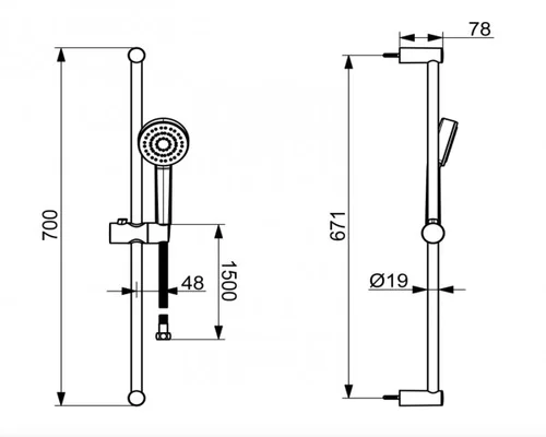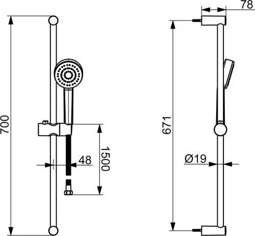 - Levering omvat: Handdouche, douchestang, verstelbare douchestanghouder, doucheslang (1500 mm).