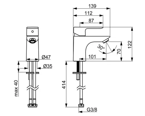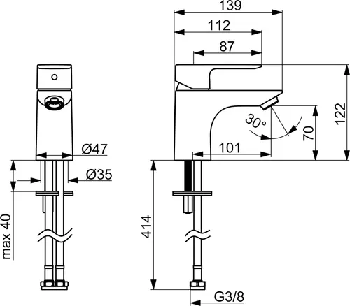 - Type aansluiting: aansluiting via flexibele drukslangen (G3/8)