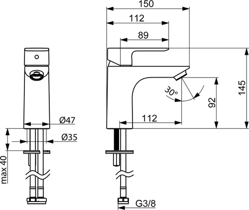 - Type aansluiting: aansluiting via flexibele drukslangen (G3/8)