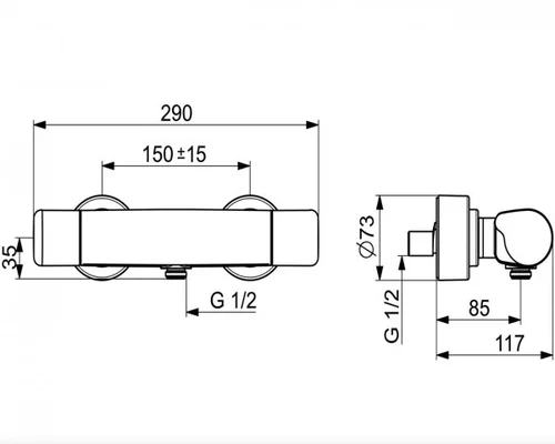 - met handgreep voor temperatuurinstelling en handgreep voor doorstroominstelling