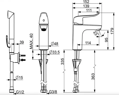 - Functionele douche met douchehouder en doucheslang (1500 mm)
