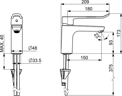 - Type handgreep: Bedieningshendel lang, hendel met W+K-markering