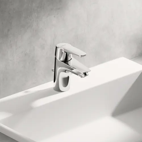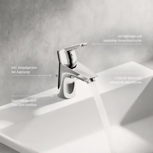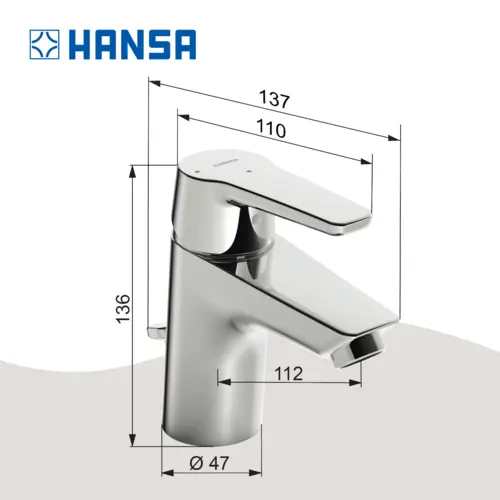 HANSA HANSAPOLO Eco eengreeps wastafelmengkraan, energiebesparende variant, met verzonken afvoer, 103mm projectie, 51402193