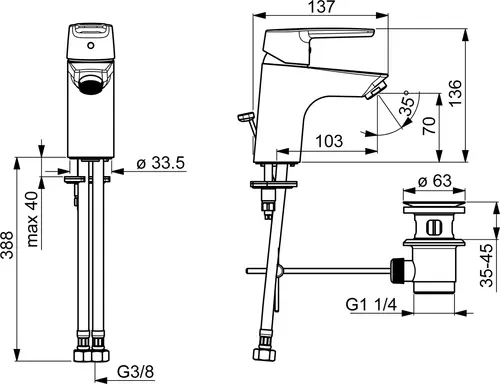 - ø 3,5 klassiek controlepatroon met keramische afdichtingsschijven