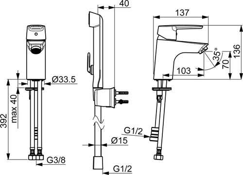- ø 3,5 klassiek bedieningspatroon met keramische afdichtschijven