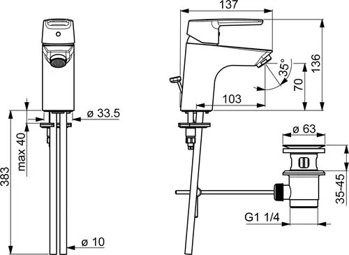 - ø 3,5 klassiek controlepatroon met keramische afdichtingsschijven