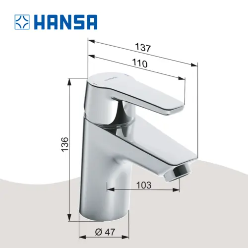 HANSA HANSAPOLO eengreeps wastafelmengkraan, zonder afloop, 103mm projectie, 51412293