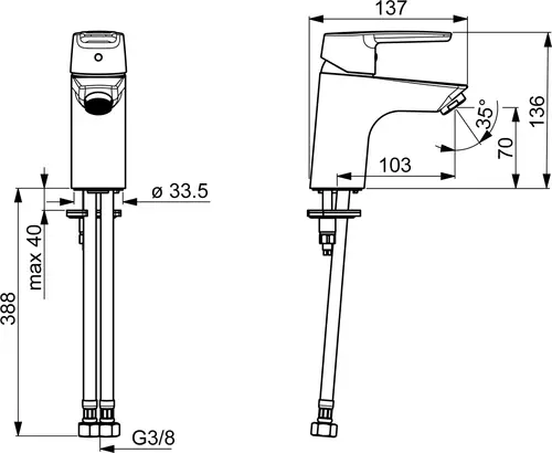 - ø 3,5 klassiek controlepatroon met keramische afdichtingsschijven