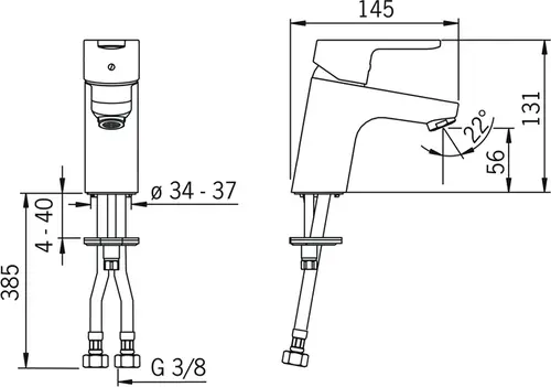 - aansluiting via flexibele drukslangen (G3/8)