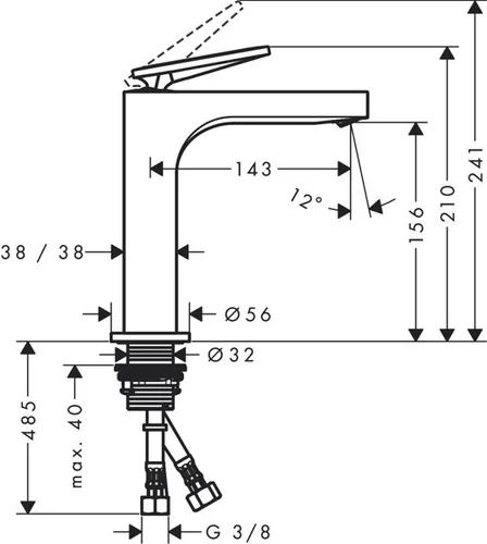hansgrohe AXOR Citterio eengreeps wastafelmengkraan, afloop niet afsluitbaar, 143mm projectie, ComfortZone160