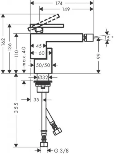 - Bestaat uit: Eéngreeps bidetmixer, afvoerset