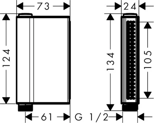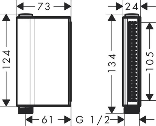 - Afmetingen douchekop 124 x 24 mm