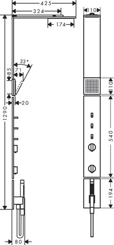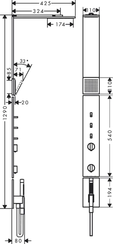 hansgrohe AXOR ShowerCompositie douchepaneel, met thermostaat, hoofddouche 110/220, schouderdouche, incl. accessoires
