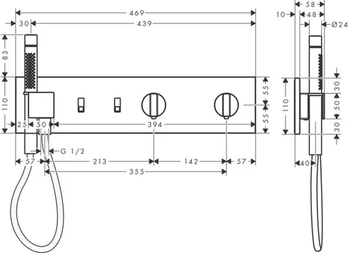 hansgrohe AXOR ShowerComposition thermostaatmodule Select, 2 verbruikers, 470/110