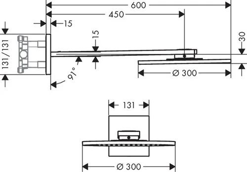 hansgrohe AXOR ShowerSolutions hoofddouche 300 2jet, wandmontage, douchearm 450 mm