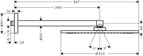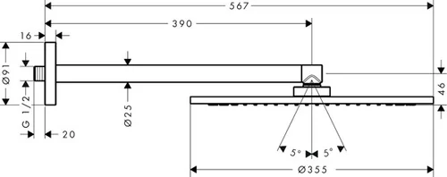 - Straalschijfoppervlak: volledig verchroomde straalschijf