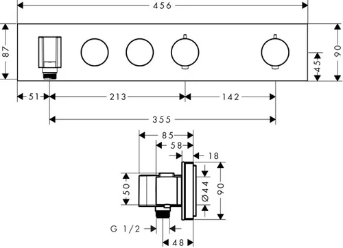 hansgrohe AXOR ShowerSolutions thermostaatmodule Selecteer 460/90, inbouw, 2 verbruikers, complete set