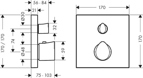 - Leveringsomvang: handgreep, huls, metalen rozet, thermostaatpatroon, stop/omschakelklep, functieblokje