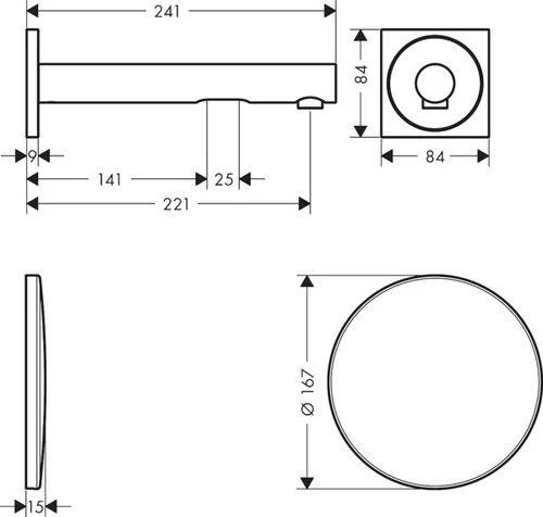 hansgrohe AXOR Uno elektronische wastafelmengkraan inbouw, wandmontage 220, 225mm uitsprong