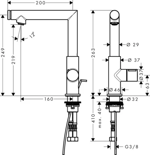 • Type aansluiting: G ⅜ aansluitslangen