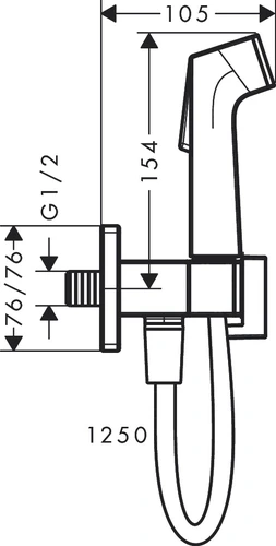hansgrohe Bidette handdouche 1jet E EcoSmart voor koud water, met douchehouder en doucheslang, hoekig design