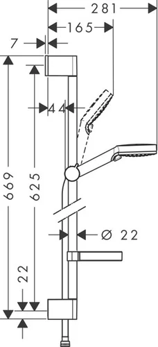 - Bestaat uit: handdouche, douchestang, doucheslang, schuif, zeepbakje