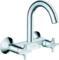 hansgrohe Logis M32 keukenmengkraan, 2-knop, wandmontage, hoge uitloop, 1 straals, uitsteek 144mm, chroom