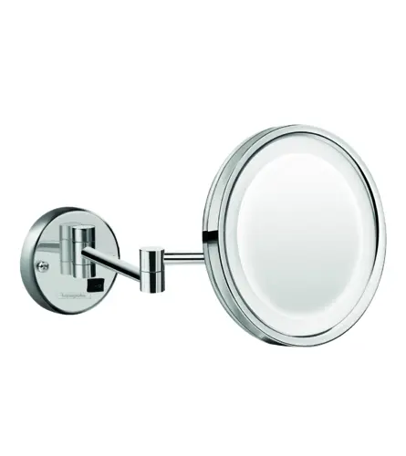 hansgrohe Logis universele scheerspiegel, met LED verlichting, kantelbaar, draaibaar, D 188mm, chroom