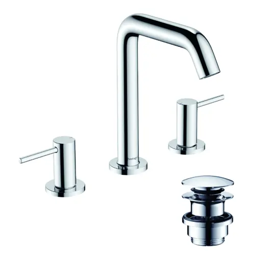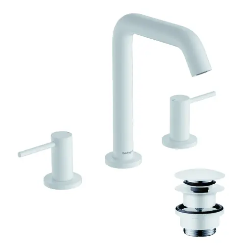 - hansgrohe Tecturis S 1x 3-gats wastafelmengkraan bestaat uit: 3-gats wastafelmengkraan, afvoergarnituur
