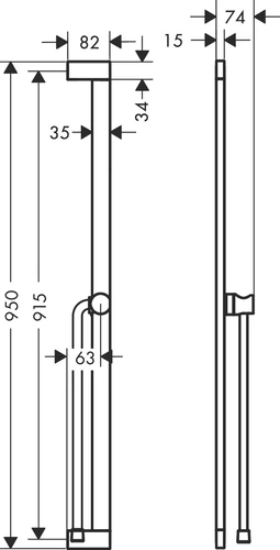 - De zelfvergrendelende doucheglijstang kan traploos in hoogte worden versteld en kan links of rechts worden gemonteerd