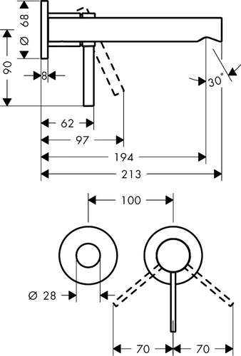 hansgrohe Zesis S eengreeps inbouw wastafelmengkraan, wandhangend, uitloop 194mm