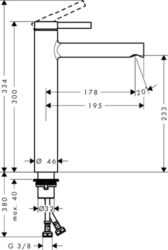 - 1 x eengreeps wastafelmengkraan 230 CoolStart voor opzetwastafels