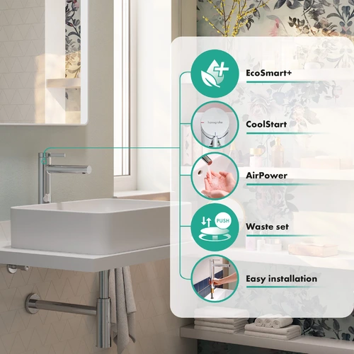 hansgrohe Zesis S eengreeps wastafelmengkraan 230 CoolStart voor opzetwastafels, met verzonken afvoergarnituur, chroom