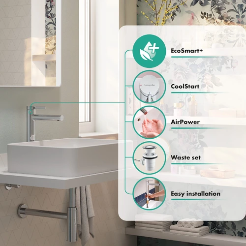 hansgrohe Zesis S eengreeps wastafelmengkraan 230 CoolStart voor opzetwastafels, met verzonken waste