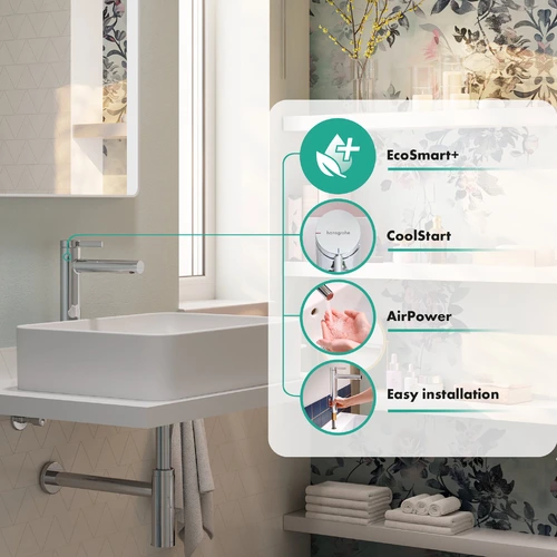 - 1 x eengreeps wastafelmengkraan 230 CoolStart voor opzetwastafels