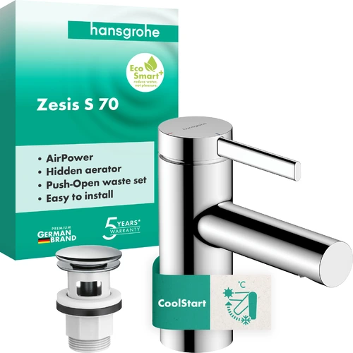 hansgrohe Zesis S eengreeps wastafelmengkraan 70 CoolStart met verzonken afvoergarnituur, chroom