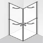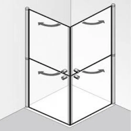 - Hoekse douchewand met scharnierende deuren en gedeelde elementen
