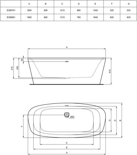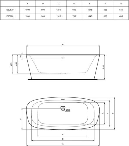 Ideal Standard Dea Duo bad 1900x900x610mm, vrijstaand, met pop-up afvoer, wit