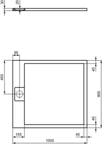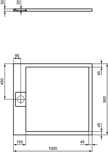 Ideal Standard Ultra Flat S i.life rechthoekige douchebak, 1000x900x30mm