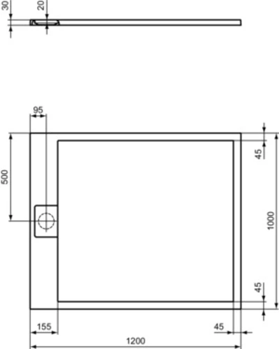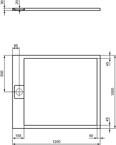 - Buitenafmetingen (BxDxH): 1200x1000x30 mm