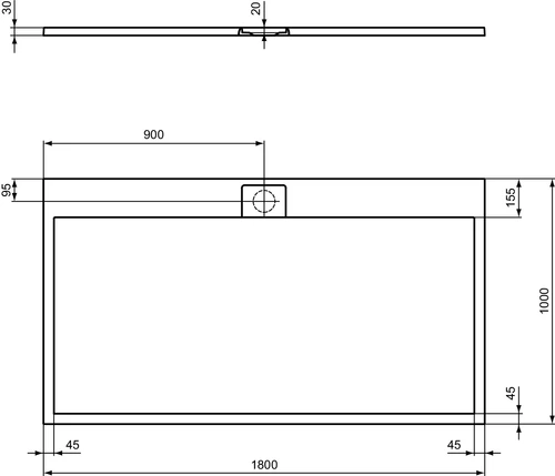 Ideal Standard Ultra Flat S i.life rechthoekige douchebak, 1800x1000x30mm