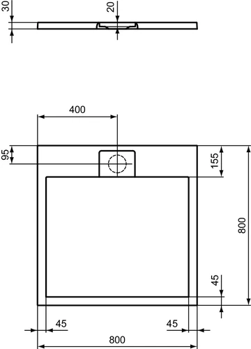 - Buitenafmetingen (BxDxH): 800x800x30 mm