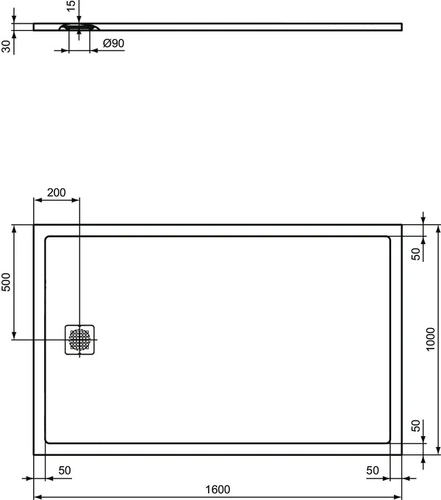 Ideal Standard Ultra Flat S rechthoekige douchebak 1600x1000x30mm, afvoer via korte zijde