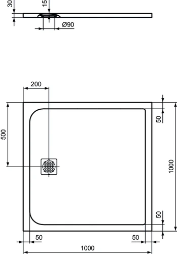 Ideal Standard Ultra Flat S vierkante douchebak 1000x1000x30mm