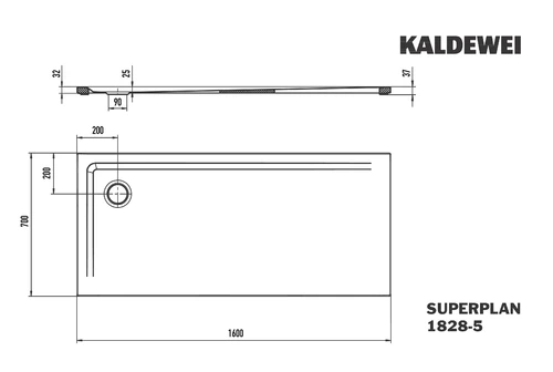 Kaldewei SUPERPLAN 1828-5, Douchebakken met extra platte douchebak, 70x160cm