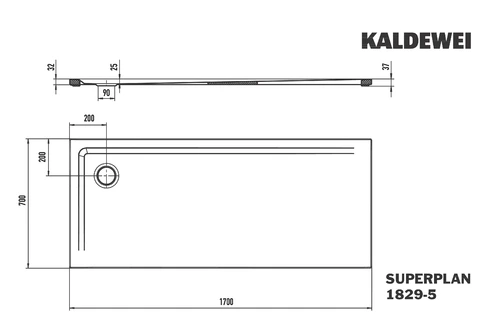Kaldewei SUPERPLAN 1829-5, Douchebakken met extra platte douchebak, 70x170cm