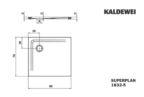 Kaldewei SUPERPLAN 1832-5, Douchebakken met extra platte houder, 75x80cm